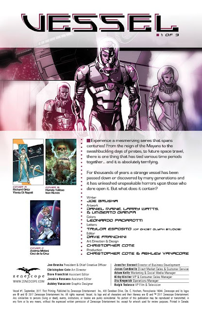 como previews de Vessel número uno de tres, realizadas magistralmente por el hot artist Daniel Maine. Este arte secuencial es un salto cualitativo frente a las páginas anteriores.